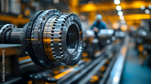 © Siasart Stock, Obraz premium Close-up of industrial machinery component in a factory setting.