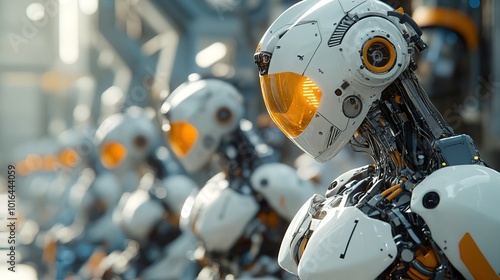 © WrongWay, Fototapeta premium Close-up of industrial robots working on an automotive assembly line