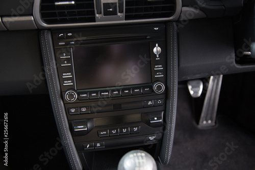 © camerarules, Fototapeta premium Close up of infotainment system in sports car