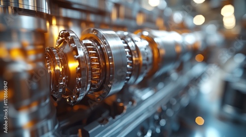 Obraz premium Close-up of intricate mechanical gears in an industrial setting, showcasing...