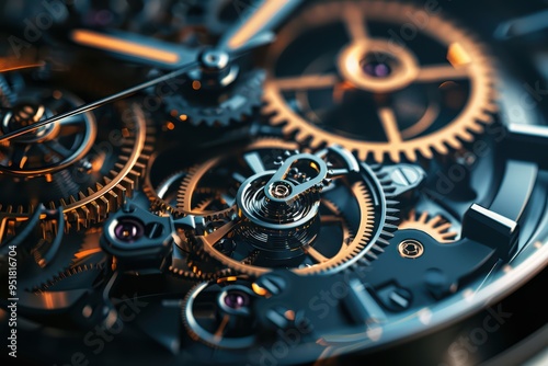 Fototapeta premium Close-up of intricate watch gears showcasing fine craftsmanship and precision...