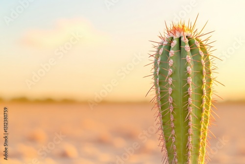 Naklejka premium close-up of isolated cactus silhouetted against cloudless sky in arid expanse...