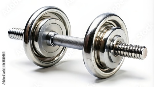 Fototapeta premium Close-up of isolated dumbbell with removed weights on white background, dumbbell, weightlifting, fitness, exercise
