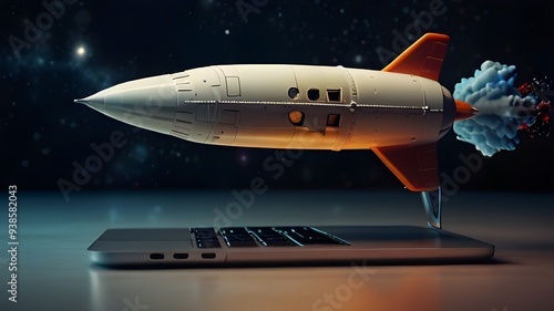 Obraz premium Close up of laptop keyboard launching rocket
