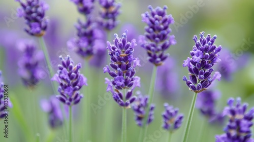 © Sinergi Digital, Naklejka premium close-up of lavender with delicate blurred background of lavender field