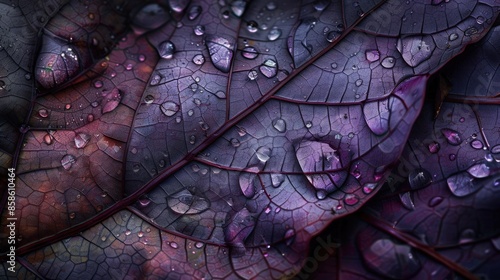 Fototapeta premium Close-up of leaf veins intertwined with a subtle pattern of water droplets...
