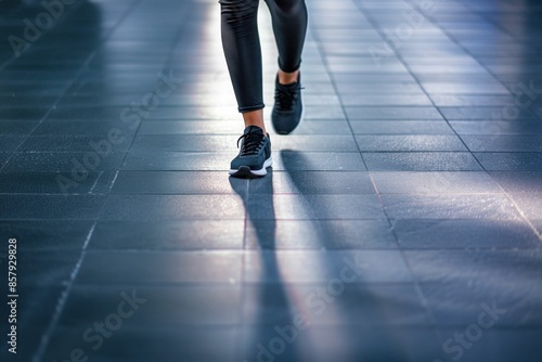 © NovaVision, Fototapeta premium Close-Up of Legs Walking in Athletic Shoes. Generative ai