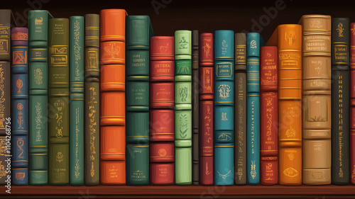 © Pavithiran, Fototapeta premium Close up of library books on shelf. Generative AI
