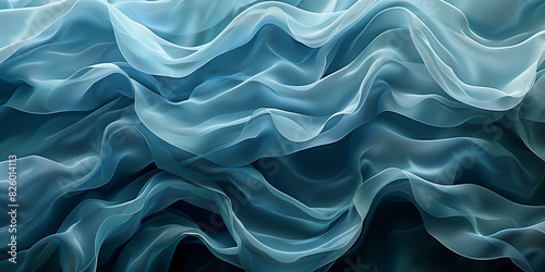 Fototapeta premium Close-up of light blue, wavy fabric layers with a silky texture, creating an undulating pattern that evokes an oceanic feel