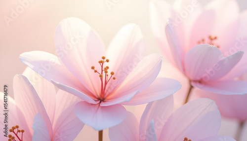 © Balada Creative, Fototapeta premium Close-Up of Light Pink Flowers with Soft Lighting - wallpaper
