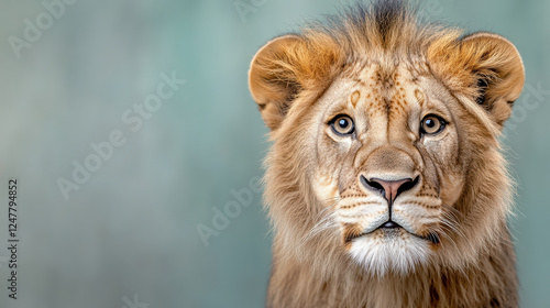 © siraphol, Obraz premium close up of lion face with piercing eyes and golden mane, showcasing its majesty