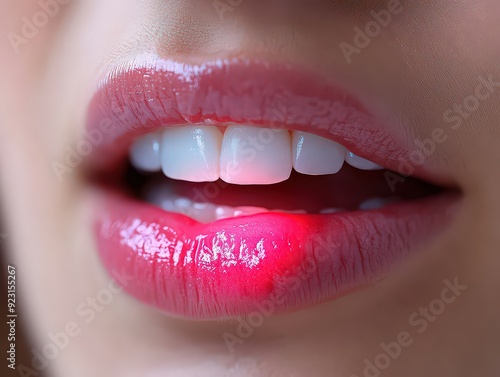 © Lamina, Obraz premium Close-up of lips with a visible cold sore, indicating a herpes outbreak.