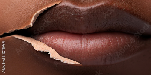 © Lila Patel, Fototapeta premium Close-up of Lips with Peeling Skin and Dark Brown Lipstick