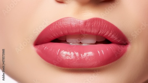 © Lifia, Obraz premium Close Up Of Lipstick-Adorned Lips, isolated on white background. Generative AI