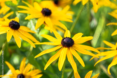 © vinbergv, Fototapeta premium Close-up of lively Rudbeckia flowers in the garden on a sunny summer day