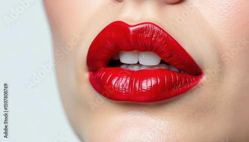 © anulak, Obraz premium Close-up of luscious red lips against pure white backdrop, glamour, promotion