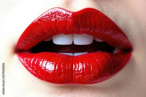 © chaiwat, Obraz premium Close-up of luscious red lips against pure white backdrop, vibrant, macro