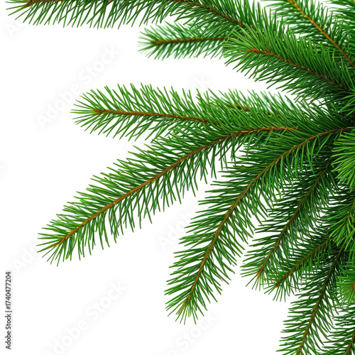 © Ass, Fototapeta premium Close-up of lush green fir tree branches against a black backdrop