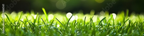 Fototapeta premium Close-up of lush green grass with a soft, blurred background highlighting...