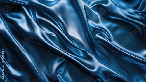 Obraz premium Close-up of luxurious, rippled blue satin fabric with silky texture