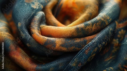 © Infinity, Fototapeta premium Close-up of Luxurious Teal and Gold Fabric Texture