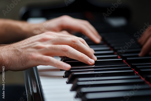 © Kagami, Obraz premium Close-up of male hands playing piano. (1)