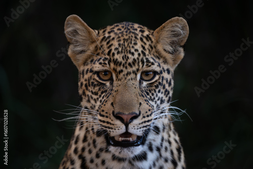 © Nick Dale, Fototapeta premium Close-up of male leopard cub facing camera