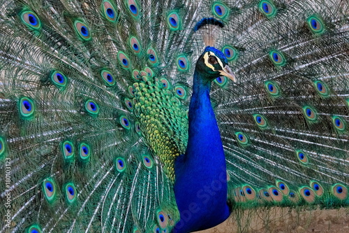 Naklejka premium Close up of male peacock (peafowl), showing its beautiful feathers