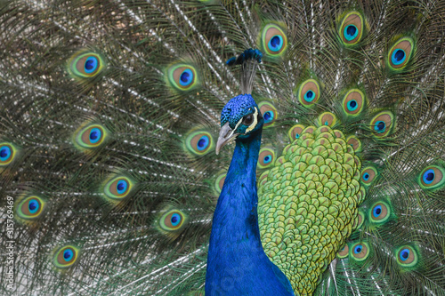 © roberto, Obraz premium Close-up of male peacock with extended feathers