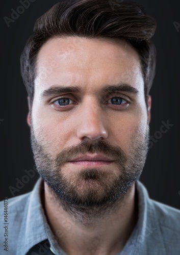 © vectorfusionart, Fototapeta premium Close up of man's face against dark grey background