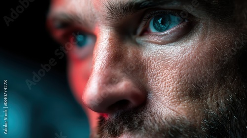 Obraz premium Close-up of Man's Intense Eyes with Dramatic Lighting, Face