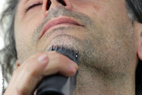 Obraz premium close up of man with electric razor