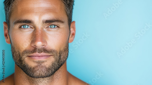 © siraphol, Fototapeta premium close up of man with thoughtful expression and striking blue eyes