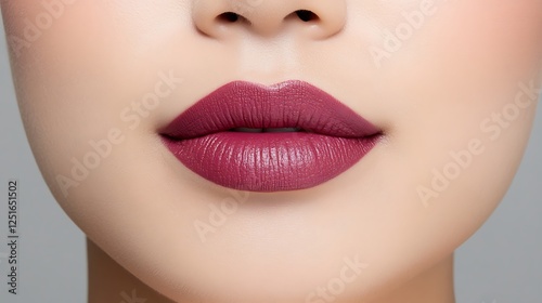 © Hoang, Fototapeta premium Close-up of Mauve Lipstick on Smooth Skin AI Generated