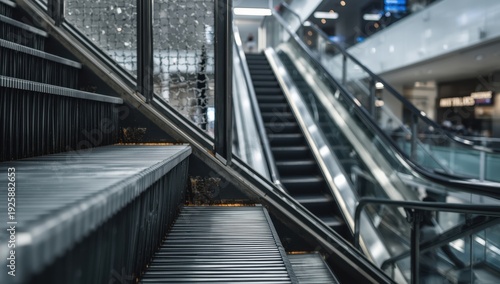 © VolumeThings, Fototapeta premium Close-up of mechanical stairs