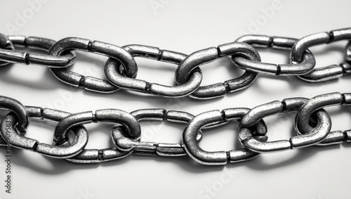 Fototapeta premium Close-up of metal chains interconnected, emphasizing strength and connection.