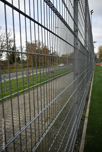 Obraz premium close up of metal fence grid