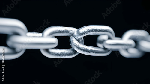 © Surachate, Obraz premium Close-Up of Metallic Chain Links on Black Background for Design Use