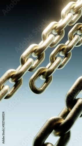 Obraz premium Close-up of Metallic Chains. Modern abstract 3D background with depth and...
