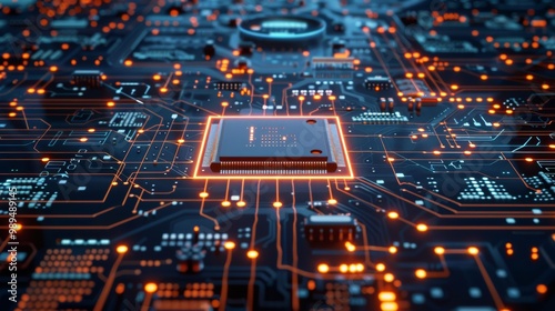 Obraz premium Close-Up of Microprocessor on Glowing Circuit Board