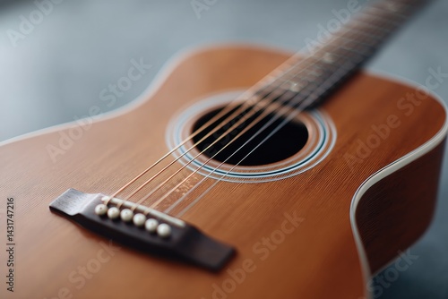 © Maria, Fototapeta premium close-up of minimalist acoustic guitar highlighting its strings and body