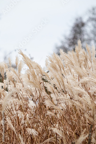 Fototapeta premium Close-Up of Miscanthus Sinensis (Chinese Silver Grass) Gently Bending in the...