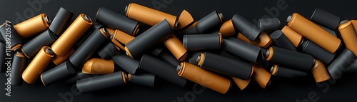 © Chano_1_na, Fototapeta premium Close-Up of Mixed Black and Orange Cartridge Casings on a Dark Background