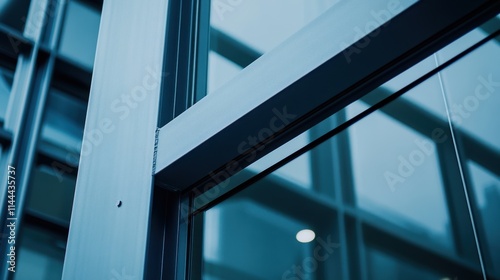 © Sarinya, Obraz premium Close-Up of Modern Glass Window Frame with Steel Structure Details