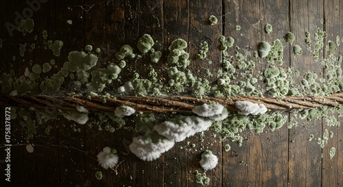 © Naga, Obraz premium Close up of mold growth on wood surface for scientific or educational use