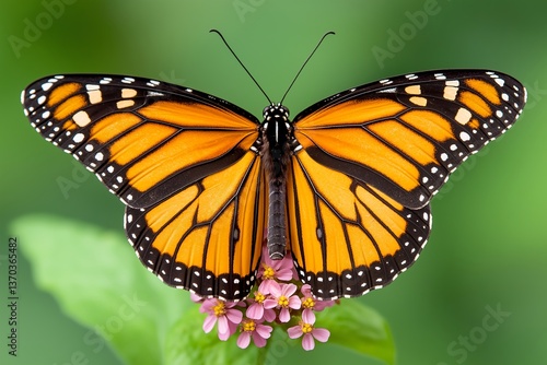 Fototapeta premium Close-Up of Monarch Butterfly on Blooming Wildflower, Butterfly with Fully...