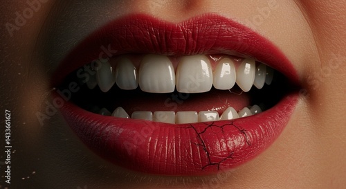 © Sutyono, Obraz premium Close-up of Mouth with Red Lipstick and Cracked Lips
