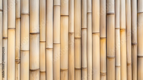 © Wish Craft Arts, Fototapeta premium Close-up of natural, vertical bamboo stalks in a wood fence texture.