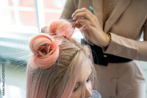 © sutulastock, Fototapeta premium Close-Up of Needlework in Handcrafted Wig Production
