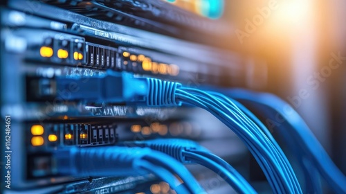 © redflower, Naklejka premium Close-up of network cables connected to a server rack